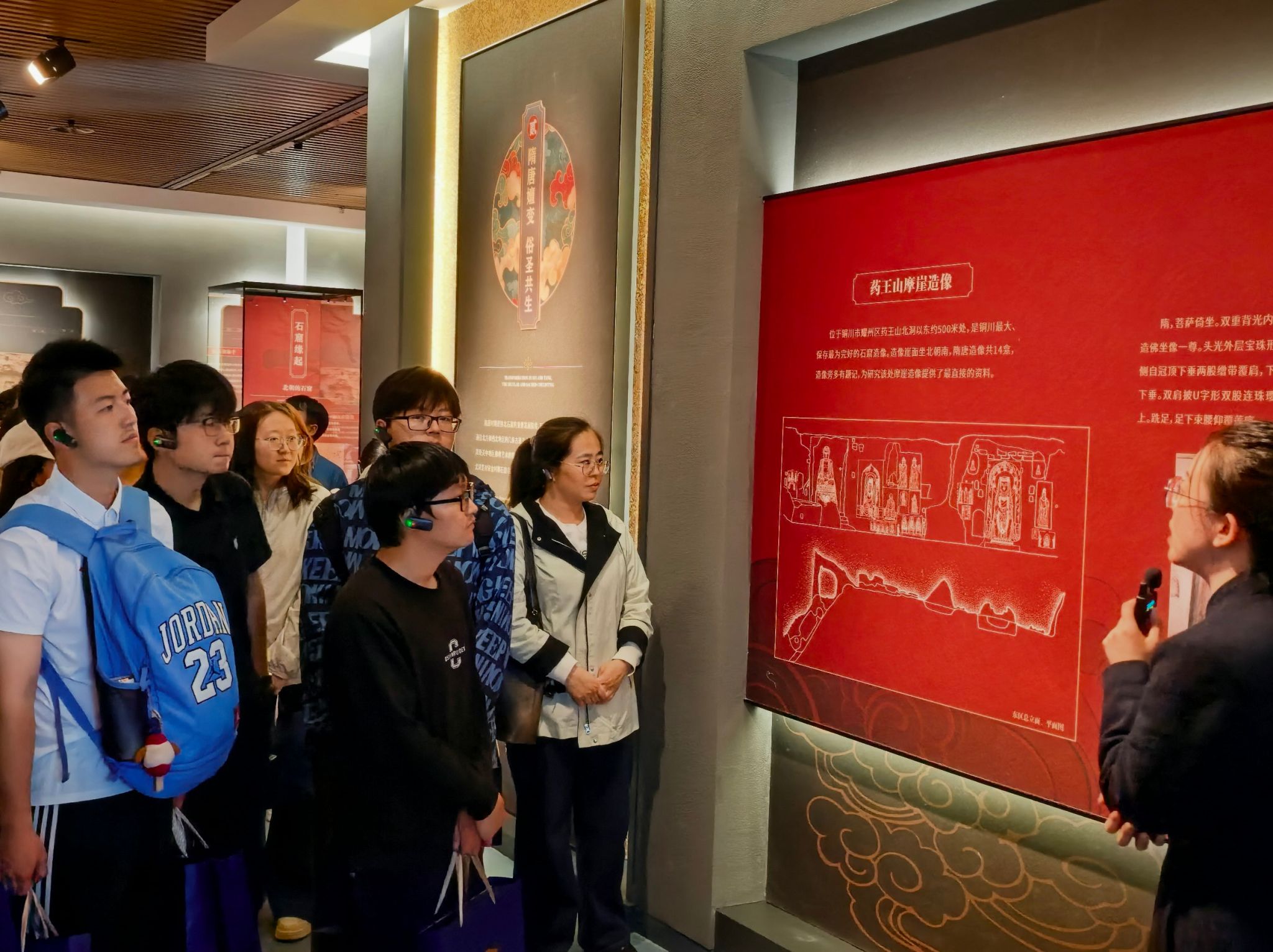 本次活动以展览主题“梵影华章·文明永续”为切入点,引导师生在艺术与历史的交融中,进一步坚定文化自信,共同守护传承中华优秀的文化遗产。 在讲解员的带领下,师生参观学习了此次临展的五个单元,了解学习陕北石窟寺文化,陕北石窟寺文化延续近两千年,是研究我国古代各民族政治经济军事文化艺术的珍贵史料。杜林渊书记在学习参观过程中为师生讲述了高校师生参与文化遗产保护的积极意义,指出陕北石窟寺文化在中华文明交融研究中的重要地位,不仅为研究中华文明史、塑造全民族历史认知提供一手资料,还为增强民族文化自信提供了重要依据,希望威尼斯人app(中国)唯一官方网站 师生要自觉肩负起传承中华优秀传统文化的使命,让石窟寺这一人类文明瑰宝在新时代焕发新的光彩。