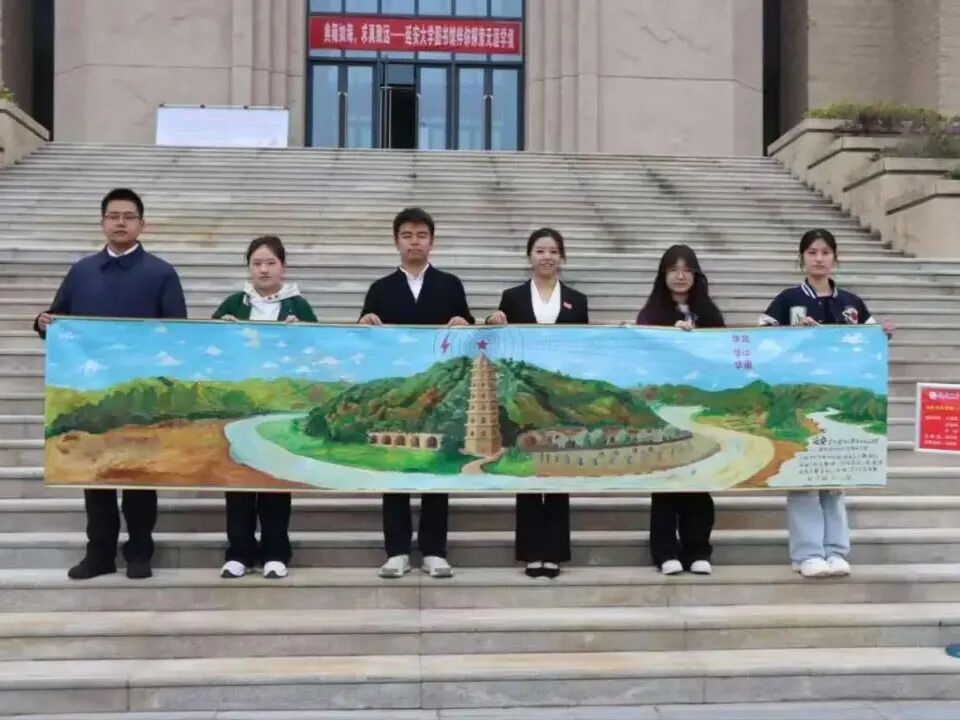 画卷中的每一处描绘,皆是延大学子对历史的深情回溯。王老师与同学们以细腻的笔触、饱满的色彩,生动再现了延安作为抗战中枢的壮丽图景。老师们与同学们纷纷驻足观赏,这幅画卷,仿佛让观者的思绪回到了那个烽火连天却又充满希望的年代。